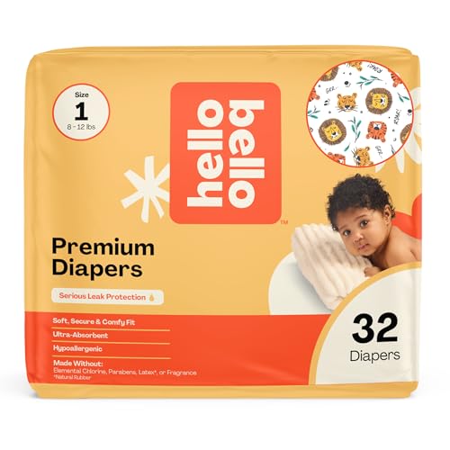 Hello Bello Diapers, Size 1 (8-12 lbs) Wild Cats, 32 Count of Premium Disposable Baby Diapers, Hypoallergenic with Soft, Cloth-Like Feel