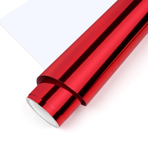 TECKWRAP Red Chrome Metallic HTV Heat Transfer Vinyl, 12" x 6ft Red Soft Foil Iron on Vinyl for Halloween T-Shirts, Easy to Cut & Weed DIY Heat Press Design,