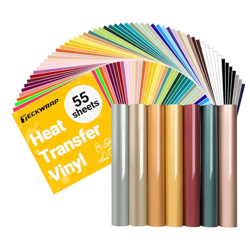 TECKWRAP HTV Bundle Heat Transfer Vinyl, 55 Sheets Assorted Color HTV Iron on Vinyl Easy to Weed, Heat Press Design for DIY T-Shirts and Other Fabrics, 12" x 10"