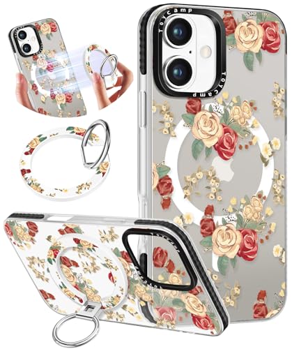 Toycamp for iPhone 16 Case Compatible with Magsafe - Cute Design 360° Magnetic Ring Holder Stand Kickstand Funny Watercolor Flower Girly Pretty Fashion TPU Phone Covers for Women Tenn Girls