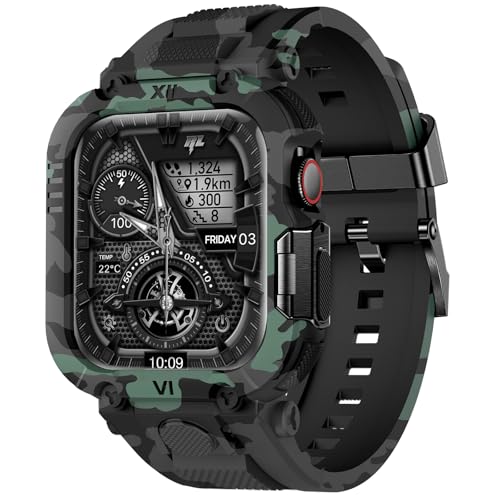 XYF Rugged Shockproof Sport Band for Men, Compatible with Apple Watch 46mm Series 11 10 with Metal Bumper Case (46mm,Camouflage/Gray)