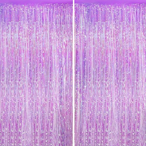 2Pack Iridescent Purple Party Backdrop Decorations,3.3x8.3ft Tinsel Curtain Birthday Decorations Foil Fringe Photo Booth Streamer Backdrop Iridescent Theme Xmas Bachelorette Graduation Party Decors