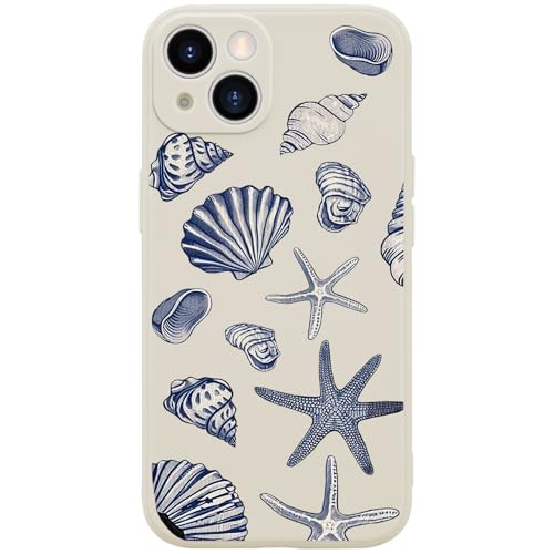 Wihytec Beach Shells Phone Case for iPhone 13 Seashells Case Cover Girly Women Liquid Silicone Soft Gel Rubber Matte Phone Cover with Microfiber Lining