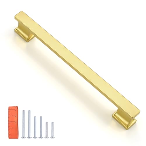 KNOBWELL 6 Pack Brushed Gold Solid Cabinet Pulls 6-3/10 Inch(160mm) Hole Center Kitchen Cabinet Handles,Cabinet Hardware for Cupboard Drawer Pulls