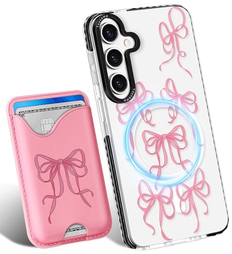 Toycamp for Samsung Galaxy S25 Plus Case - Compatible with Magsafe Credit Card Holder Wallet Magnetic Cute Women Teen Girls Kawaii Girly Unique Bow Design Phone Cover for Samsung S25 Plus