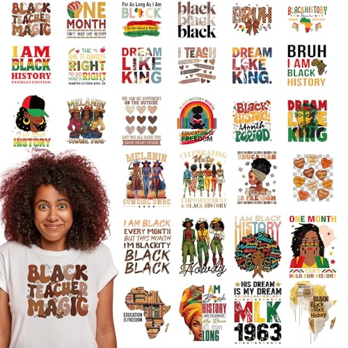 Black History Month DTF Transfers Ready to Press - 30 Sheets DIY Black History Month Shirt, Vintage Heat Transfer Stickers for T-Shirts Iron on Decals for Clothes Pillow Bag Hat DIY Crafts Costume