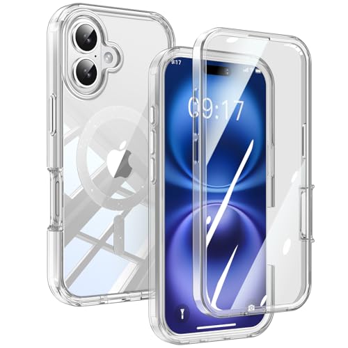 WASTROYAL Sparkling Magnetic for iPhone 16 Case, [Built in Screen Protetor] [Fit for Magsafe] Full Body Transparent Slim Bumper Phone Case Cover for iPhone 16 6.1 inch Men Women, Clear