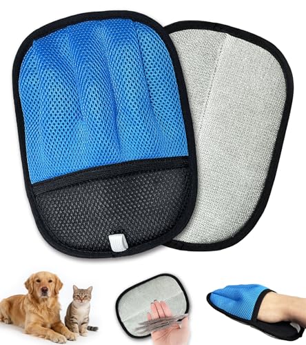 Upgraded 5-Finger Pet Hair Removal Gloves for Cats & Dogs, Reusable Electrostatic Magic Brush for Carpet, Couch, Car Seat, Clothing, Gentle Grooming and Hair Remover Tool (Blue)