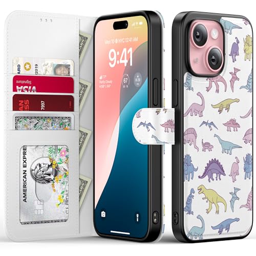 FUNMIKO for iPhone 13 Mini Case Wallet,Detachable Flip Folio Leather Cover,RFID Blocking 4 Card Slots Holder,Magnetic Kickstand,Protective Phone Shell for Women Girls 5.4",Cute Dinosaur s