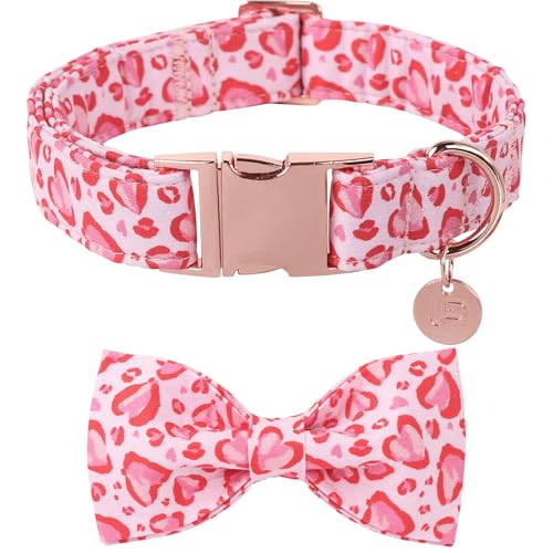 UP URARA PUP Valentine’s Day Dog Collar with Bow Tie, Pink Heart Bowtie Collar with Metal Buckle, Valentine’s Day Gift Pet Collar for Puppy Girl Boy Dog or Cat, Wedding Dog Collar,XL, Neck 16-26in
