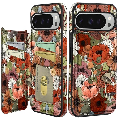 Shorogyt for Google Pixel 9 Pro XL Wallet Case with Card Holder - Flower Mush Design Kickstand for Magnetic Clasp Back Flip Folio Leather Phone Cases for Pixel 9 Pro XL Case for Women Girls Men