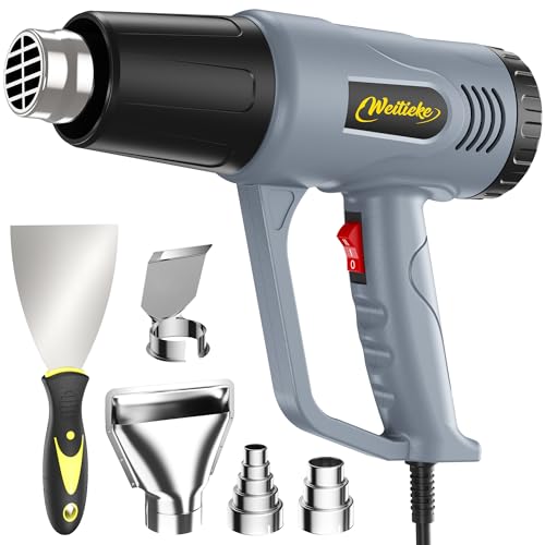 Weitieke Heat Gun, 900~1300W Heavy Duty Hot Air Gun 400℃ & 600℃ Dual-Temperature Settings, Overload Protection, Double Heating Wire Fast Heating, 5 Accessories for Paint Stripping, Crafts(3000A)