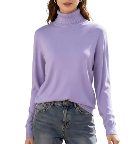 SANGTREE Women's Turtleneck Sweater Long Sleeves Knitted Pullover Sweater Lilac, M