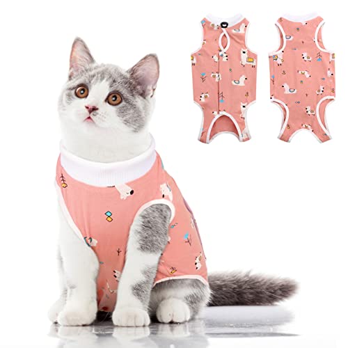 SUNFURA Cat Recovery Suit, Kitten Surgical Full Bodysuit for Abdominal Wound Protector Anti Licking After Surgery, Professional Bandages Cone E-Collar Alternative for Small Male & Female Pets
