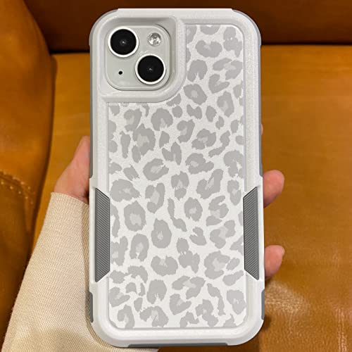 Burmcey for iPhone 13/14 Case White Leopard Light Gray, Cheetah Print Heavy Duty Tough Rugged Full Body Protection Shockproof Protective Women Girls Case