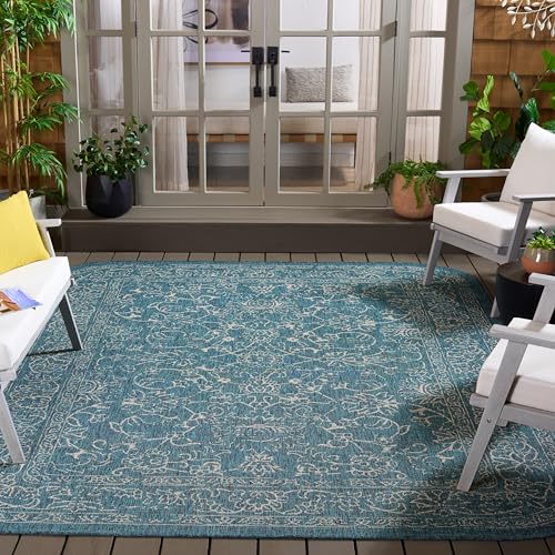 SAFAVIEH Washable Rug Outdoor Courtyard Collection - 8' x 10', Navy & Ivory, Non-Shedding & Easy to Clean, Ideal for Patio, Backyard, Mudroom (CY8680-36821)
