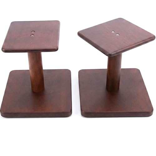 OKOstand Desktop Speaker Stands Made of Pure Solid Wood, Natural Style, 360° Rotatable Top Plate, Suitable for Medium/Large Tabletop Speakers and Studio Monitors (WalnutBrown Finish_DSS7(7 inch))