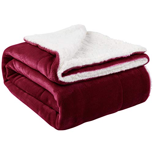 NANPIPER Sherpa Blanket Warm Blankets Super Soft Fuzzy Flannel Fleece/Wool Like Reversible Velvet Plush Couch Blanket Lightweight(Wine Red Throw Size 50"x60")
