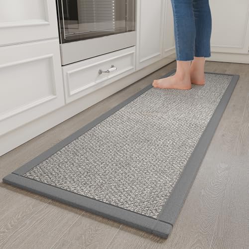 YDKGL Kitchen Runner Rugs Non Slip Washable Anti Fatigue, Super Absorbent 0.4" Thick Cushioned Long Kitchen Mats for Floor, Jute-Look Sink Floor Mat Laundry Standing Mat, Easy Clean, Gray 17"x59"