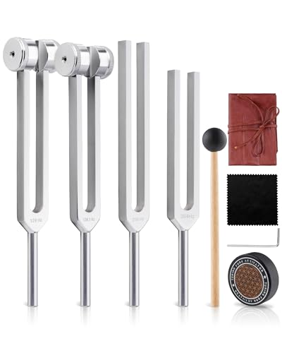 Tuning Forks for Healing Set-128Hz, 136.1Hz, 256Hz, 384Hz Weighted & Unweighted with Activator & Pouch-Complete Sound Therapy Kit for Chakra Balancing, Yoga, Meditation, Stress Relief & Energy Healing