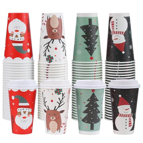 Clawsoff 100 Pack 16 oz Christmas Coffee Cups with Lids, Disposable To Go Paper Coffee Cups for Hot/Cold Drinks Office Home Shop Event (Colorful)