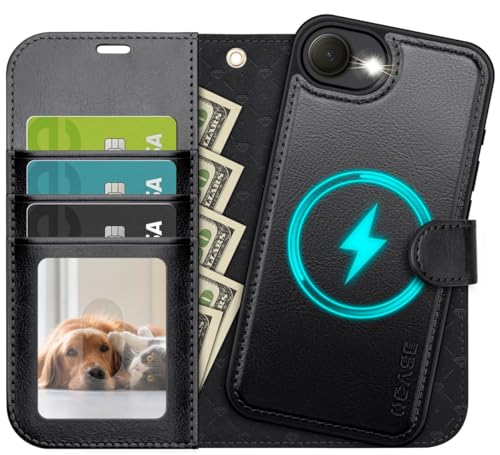 OCASE for iPhone 16e Case Detachable Wallet Case with Card Holder, 2 in 1 Pu Leather Flip Folio with RFID Blocking Stand Wrist Strap Shockproof Phone Cover 6.1 Inch 2025, Black
