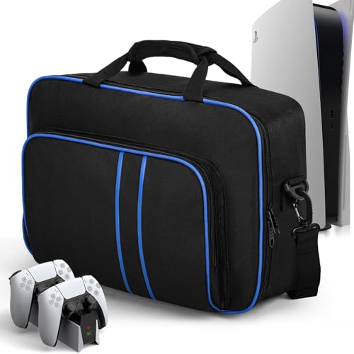 Carrying Case for PS5, Portable Carry Case Bag for Playstation 5, Protective Travel Storage Bag with Thick Padding Compatible for PS5 Digital Edition,Controller,Game Discs,Charger & Accessories, Black