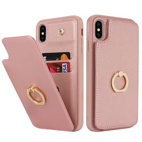 Lipvina for iPhone Xs Max Case with Card Holder,Credit Card Holder,Ring Stand Kickstand,Flip Shockproof Cute Phone Wallet Case for Women (6.5 inch,Rose Gold)