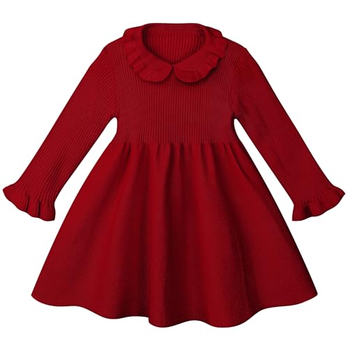 AlisOker Toddler Baby Girls' Long Sleeve Dresses Ruffle Ribbed Knit Sweater Dress Fall Winter Clothes Outfits 6M-5T Red