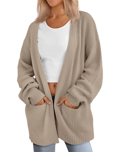 LILLUSORY Womens Cardigan Sweater Fall Fashion Outfits Clothes 2025 Teacher Work Office Old Money Long Oversized Winter Travel Cozy Chunky Knit Winter Essential Business Casual Clothing Tan