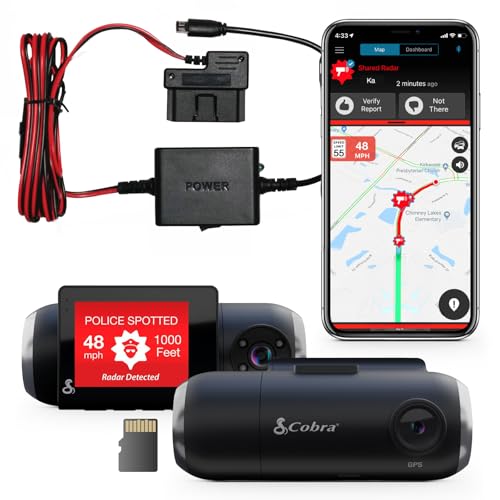 Cobra SC 201 Smart Dash Cam and 2.5A OBDII Port to Micro-USB Hardwire Kit: Front View Camera with Full HD 1080P Resolution, Built-in WiFi & GPS, Live Alerts Through Drive Smarter App