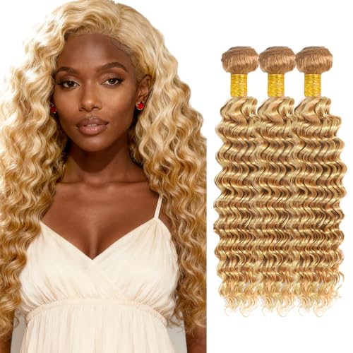 24 26 28 inch Blonde Bundles Human Hair 613 Bundles P27613 Deep Wave Bundle 613 Wet and Wavy Bundle Human Hair 150g