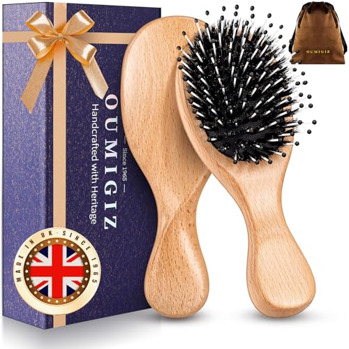 Mini Boar Bristle Hair Brush Since 1965 British Craftsmanship, Handmade Natural Wooden Small Hairbrush, Soft Bristles Gentle Detangling Smoothing Women Men Kids Long Curly Thick,Thin, Fine Hair