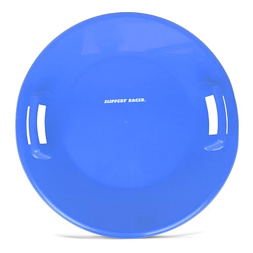 Slippery Racer Heavy-Duty Cold Resistant Downhill Pro Adults and Kids Plastic Outdoor Winter Saucer Disc Snow Sled with Handles (Blue, 1 Pack)