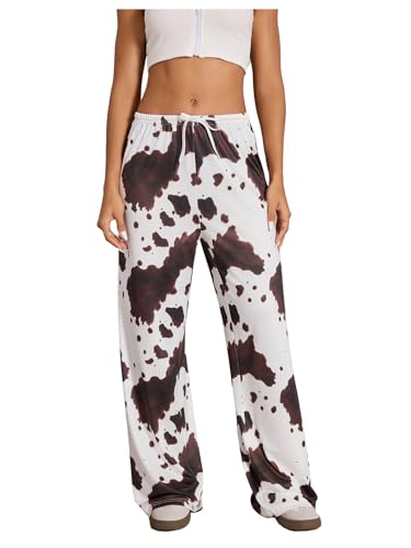 RoseSeek Women's Drawstring Waist Straight Streetwear Long Wide Leg Pants Casual Loose Baggy Workout Long Fall Sweatpants Cow Brown Medium