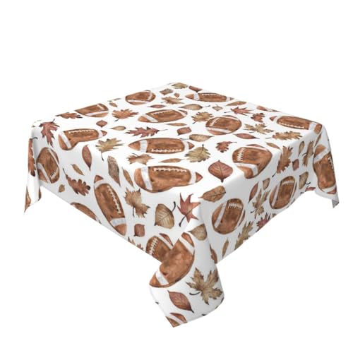 Fall Tablecloth Square 54 x 54 Inch Rugby Maple Leves Football Table Cloth Outdoor Polyester Fabric Farmhouse Harvest Thanksgiving Autumn Table Cover for Kitchen Party Picnic Decor