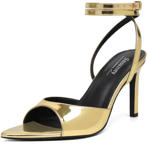 Susanny Strappy Heels for Women Gold High Heels Sandals Open Toe Ankle Strap Lace Up Heels Stiletto Sexy Pumps Wedding Guest Party Evening Prom Dance Dress Shoes 7.5