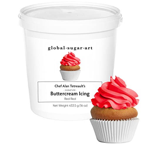 Red Buttercream Frosting for Cake Decorating – Firm Icing for Cakes & Cupcakes, 16 Ounce Tub by Global Sugar Art/Chef Alan Tetreault (Red, 16 Ounce)