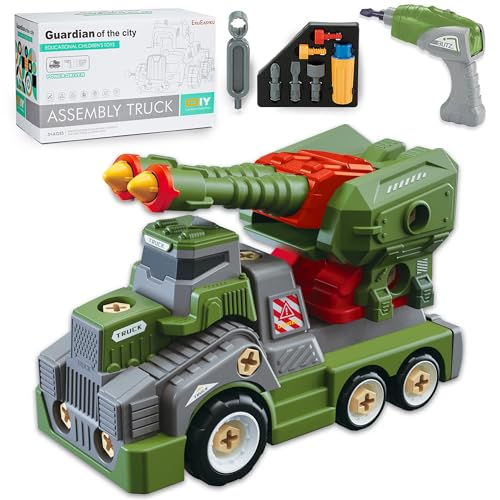 EKU EASYKU 11inches Large Take Apart Trucks Army Toys for Boys Girls Kids 3-10 Year Old Missile Vehicles Anti Aircraft Trucks Toys with Electric Drill Assembly Toy