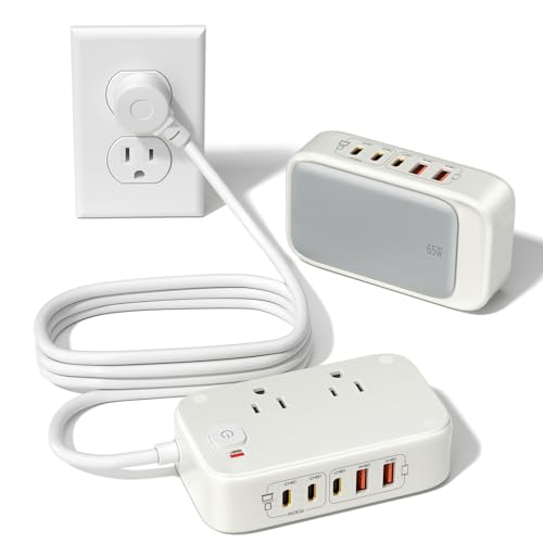 KWRNVO Power Strip with USB Ports 175W GaN 7-in-1 USB C Charging Station Type C & USB A Ports with AC Outlets 2500W for Multi Devices for Phone/Laptop/Home Appliances