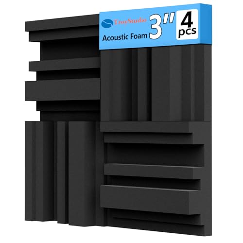 TroyStudio Thickened 12 X 12 X 3 Inch Acoustic Foam Panels in Diffusion Pattern, 4 Pcs High Density Sound Absorbing Foam Diffuser, Soundproof 3D Wall Padding Tiles for Recording Studio Home Office