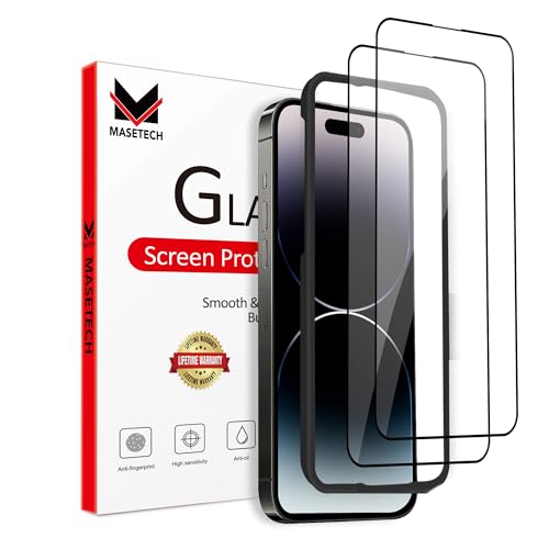 MASETECH For iPhone 14 Pro Max Screen Protector Tempered Glass [Black Edge] Compatible with Apple Dynamic Island (2 Pack)