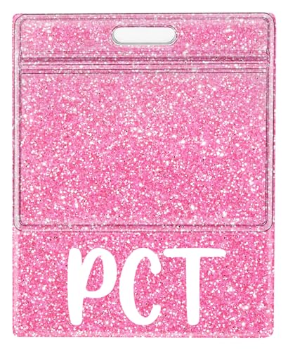 Plifal Oversized PCT Badge Buddy Card Holder - XL Patient Care Technician Nursing Accessories Glitter Pink Horizontal ID Identification Tags for Hospital Student Medical Work
