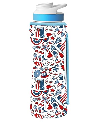 SLEILIN 22oz Cute Printed Sleeve Compatible With Cirkul Water Bottle For Plastic And Stainless Steel Bottles 22oz Neoprene Sweat-Wicking Material Insulated Cover Designed With Handles (July 4th)