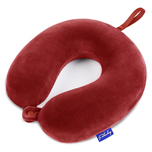 Fabuday Neck Pillows for Travel - Airplane Pillow for Long Flight with Attachable Snap Strap Washable Cover, Memory Foam Travel Rest Pillow for Airplanes, Plane, Neck Support for Adults Red