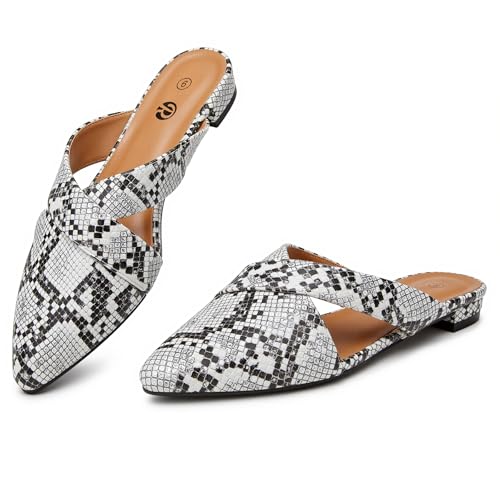 Rekayla Mules for Women Pointed Toe Flats Backless Loafers Slip On Shoes for Women, White Size 6