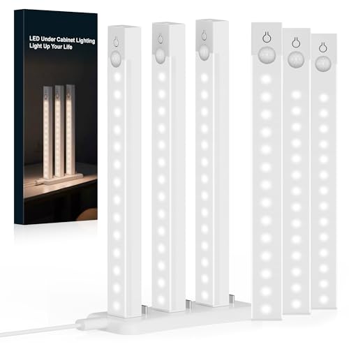 Rihvy 12-Pack Under Cabinet Lighting with 2 Charging Stations, 8-in Rechargeable Motion Sensor Light Indoor, 3 Color Dimmable Closet Light, USB Stick on LED Magnetic Under Counter Lights for Kitchen