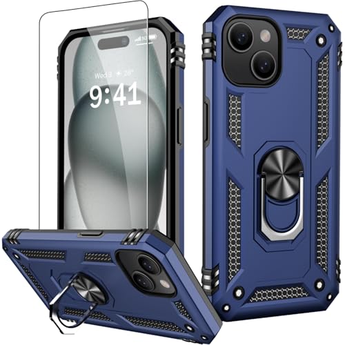 IKAZZ for iPhone 14 Case 6.1 Inch with Screen Protector,Military Grade Shockproof Heavy Duty Protective Phone Cover Pass 16ft Drop Test with Magnetic Kickstand Car Mount Holder,Blue