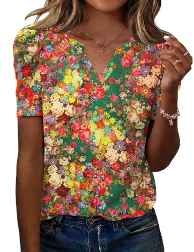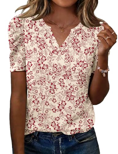 LOMON Spring Tops for Women 2026 Puff Short Sleeve Summer Outfits Fashion Tops for Women Trendy Work Shirts Womens Blouses Floral L