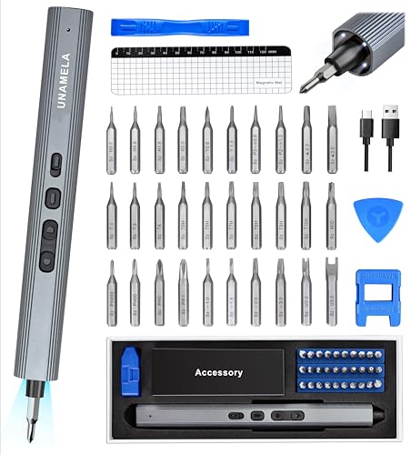 UnaMela Mini Electric Screwdriver Set Upgraded: Small Electric Precision Screwdriver Cordless - 3 Torque Settings, 30 S2 Bits, 4 LED Lights, Power Screwdriver Repair Tool Kit for PC RC Electronics